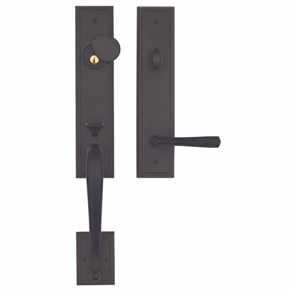 Description: The Rockwell Premium San Jose Solid Brass Entry Door Handle Set is a stylish and durable door handle set designed to provide security and elegance to your front door. It is crafted from solid brass and features an antique black finish.